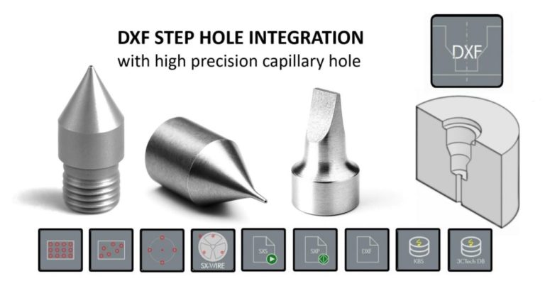 Die Basic SARIX-Software mit DXF-Step-Dateiintegrationsfunktion interpretiert automatisch die importierte Geometrie und generiert den entsprechenden Elektrodenpfad. Dadurch wird sichergestellt, dass das Bohren genau auf den definierten Durchmessergrößen ausgeführt wird, während die Knotenausrichtung zwischen den Durchmessern perfekt beibehalten wird.