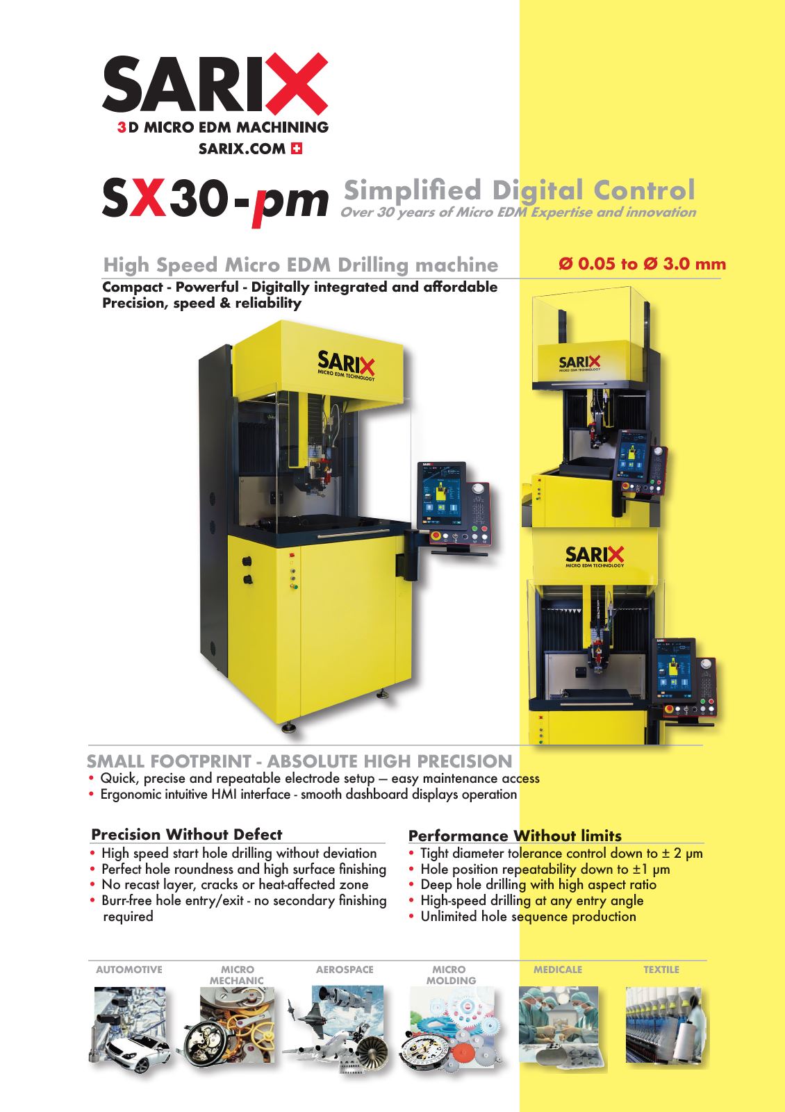 The high-performance SARIX machine range, coupled with the PULSAR generator and Micro EDM Technology, not only consolidates but also unlocks new possibilities for creating smaller, deeper, and more precise holes, all the way up to large and heavy parts. The inclusion of multi-axis CNC capabilities enables the handling of intricate workpieces where the performance of Micro EDM Machining is required.